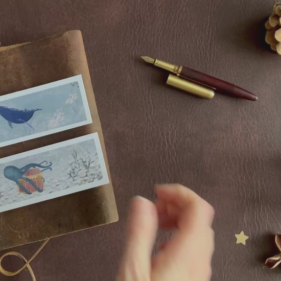 Add a gentle touch of underwater wonder to your reading with this pair of handmade illustrated ocean bookmarks.