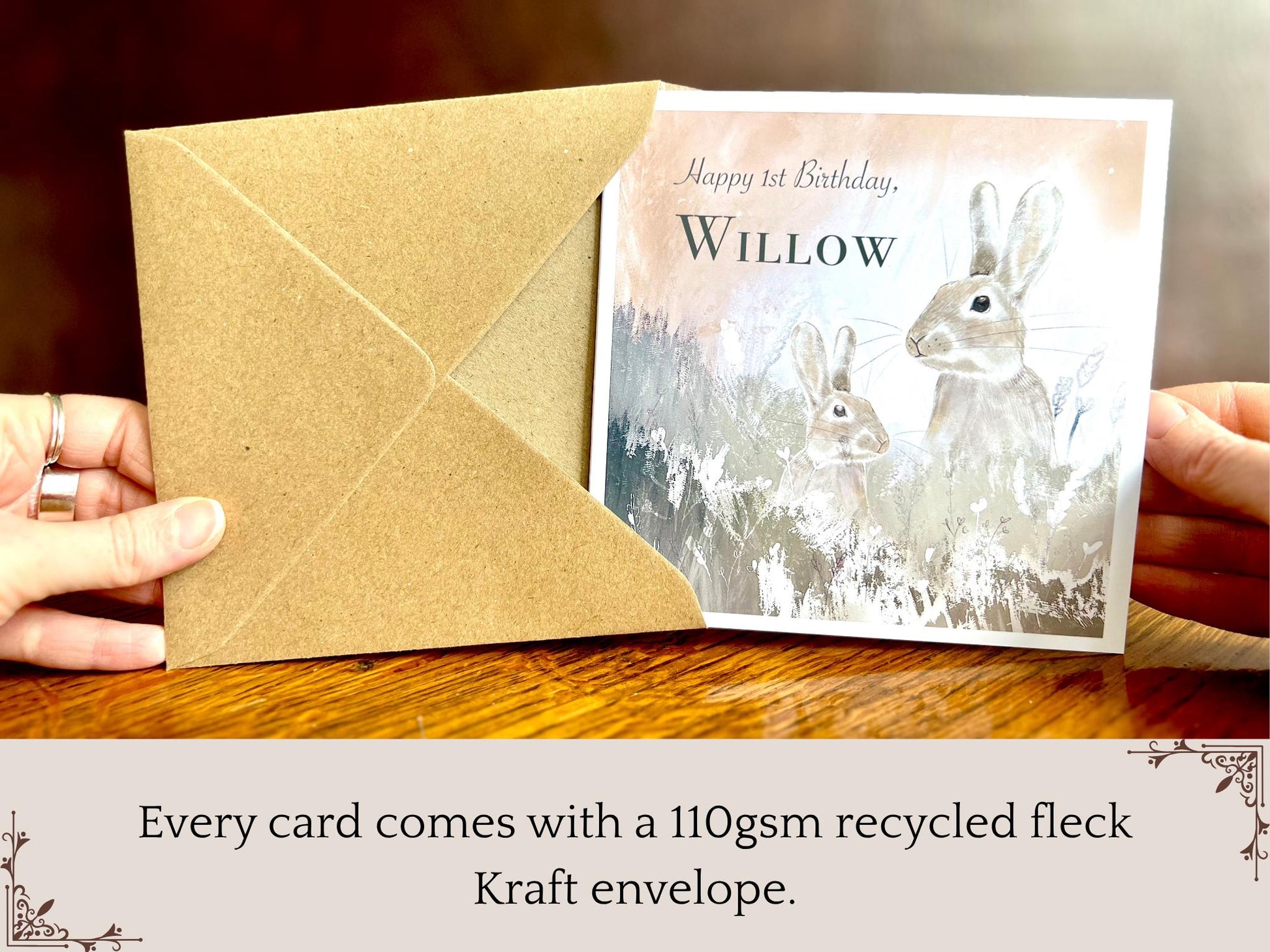 ✨ Make their birthday extra special with this adorable personalised card, featuring two sweet illustrated rabbits against a soft pale pink background. The front reads ‘Happy Birthday’ followed by the name of your choice, creating a meaningful keepsake for any age. With its gentle design and custom touch, it’s a lovely choice for a grandchild or a grandma – or anyone who adores bunnies and beautifully illustrated cards. ✨