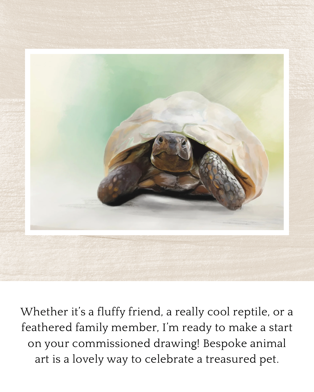 Just a quick note - the details below might sound a bit formal, but they’re here simply to make sure we both have the full details before starting the pet portrait commission. Thanks for taking a moment to read through the T&Cs! ☺️
