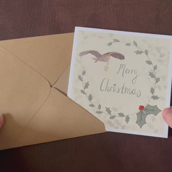 Holly & Owl Christmas Card
