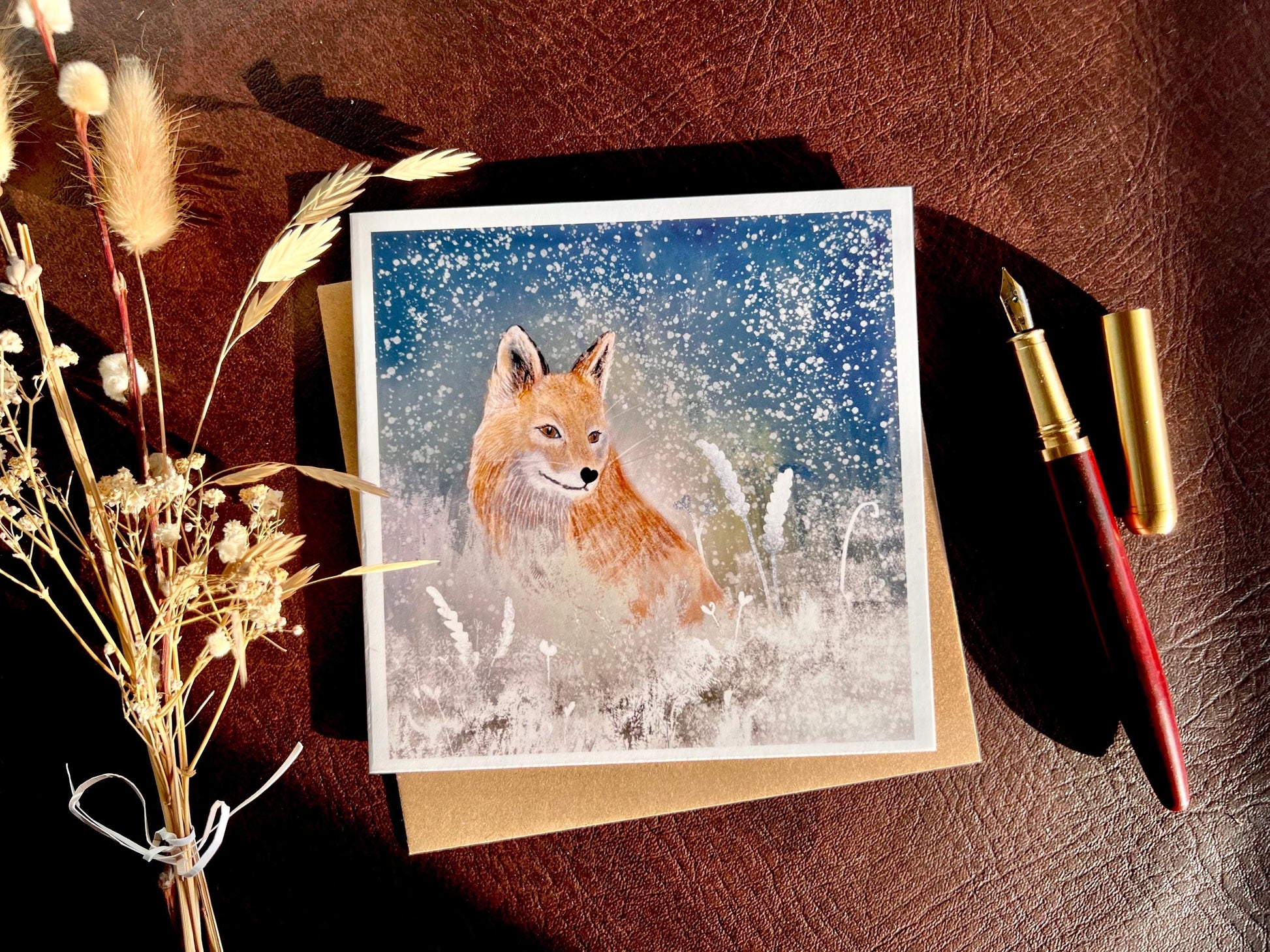 Winter Fox Art Card – Red Fox in Snow, Blank Inside for Any Occasion