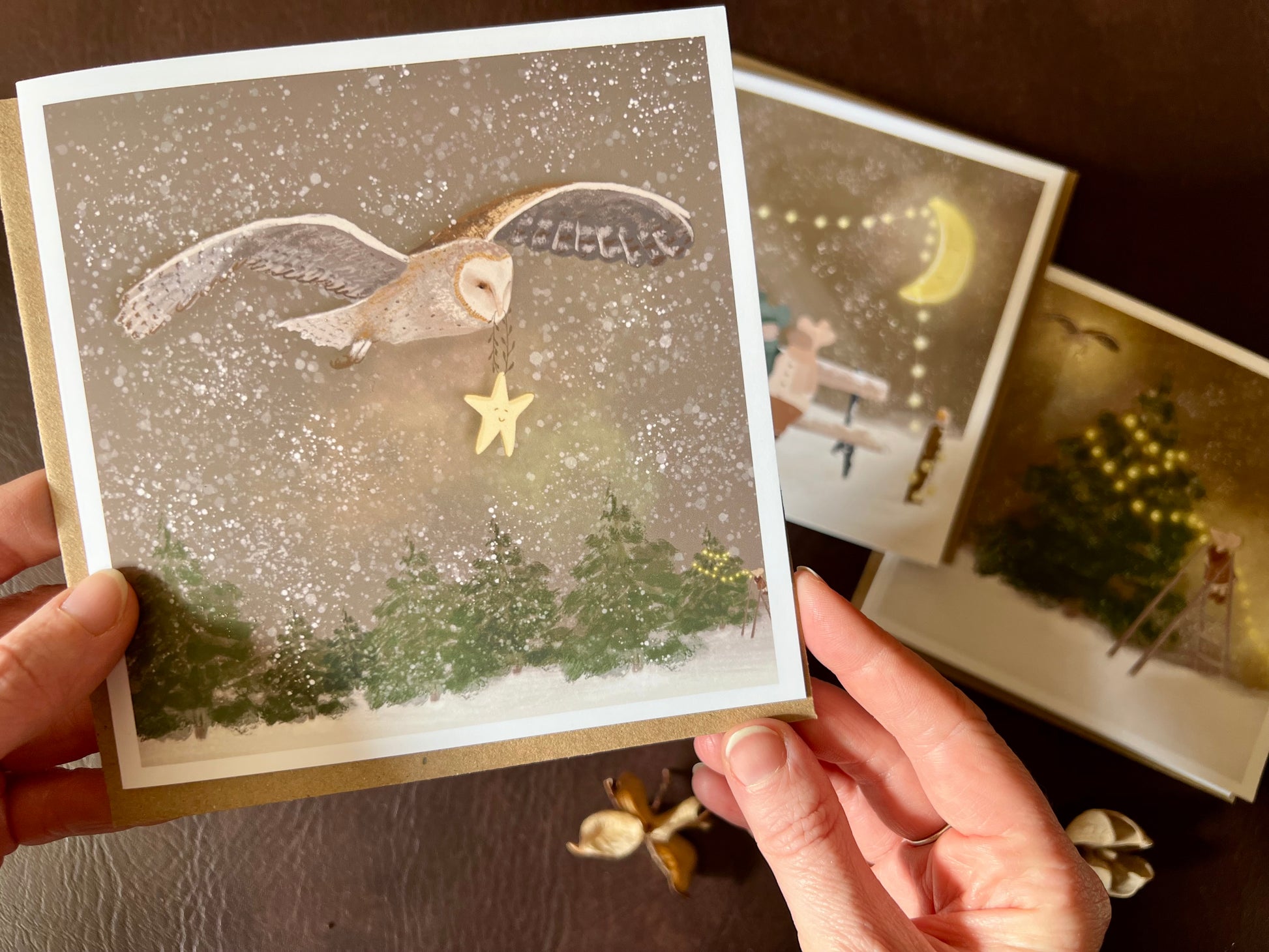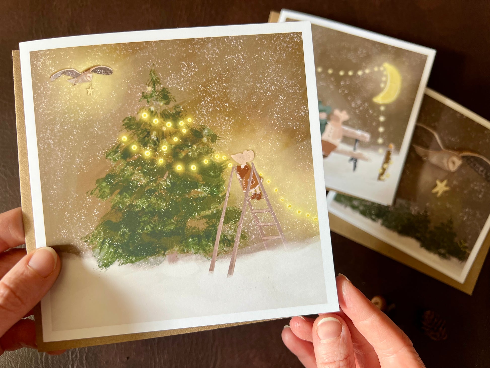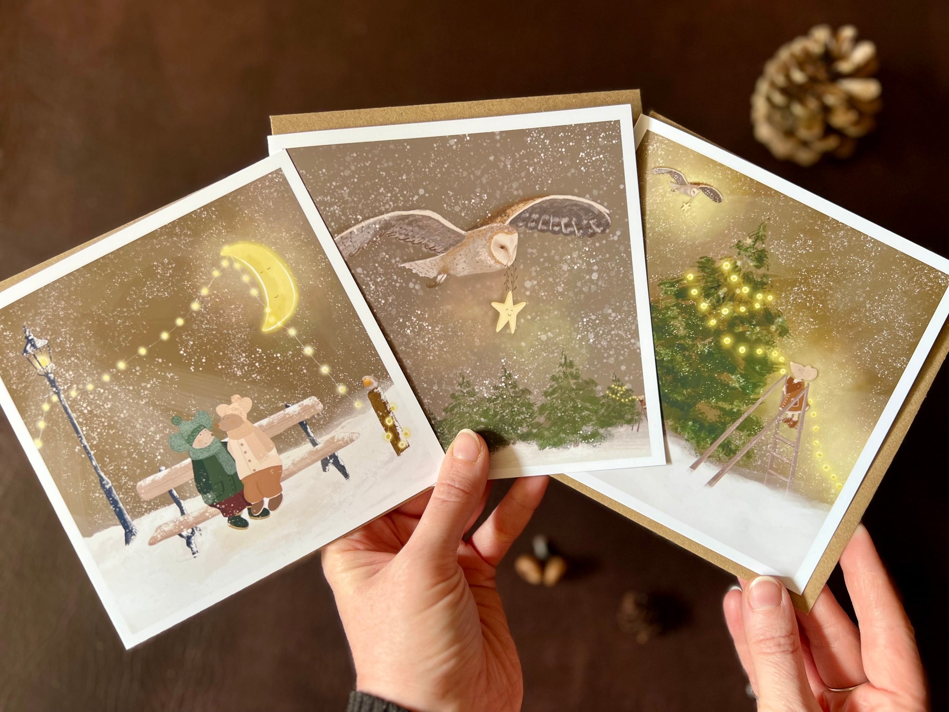 Woodland Winter Card Set – Pack of 3 Illustrated Christmas Cards – Magical Nighttime Designs